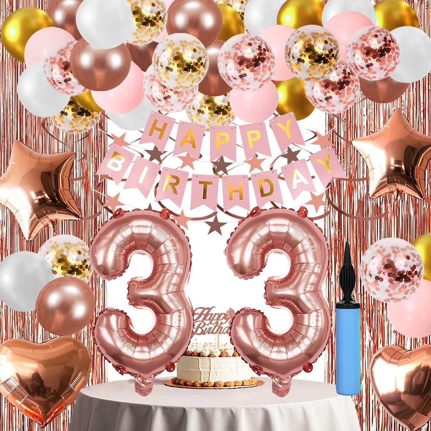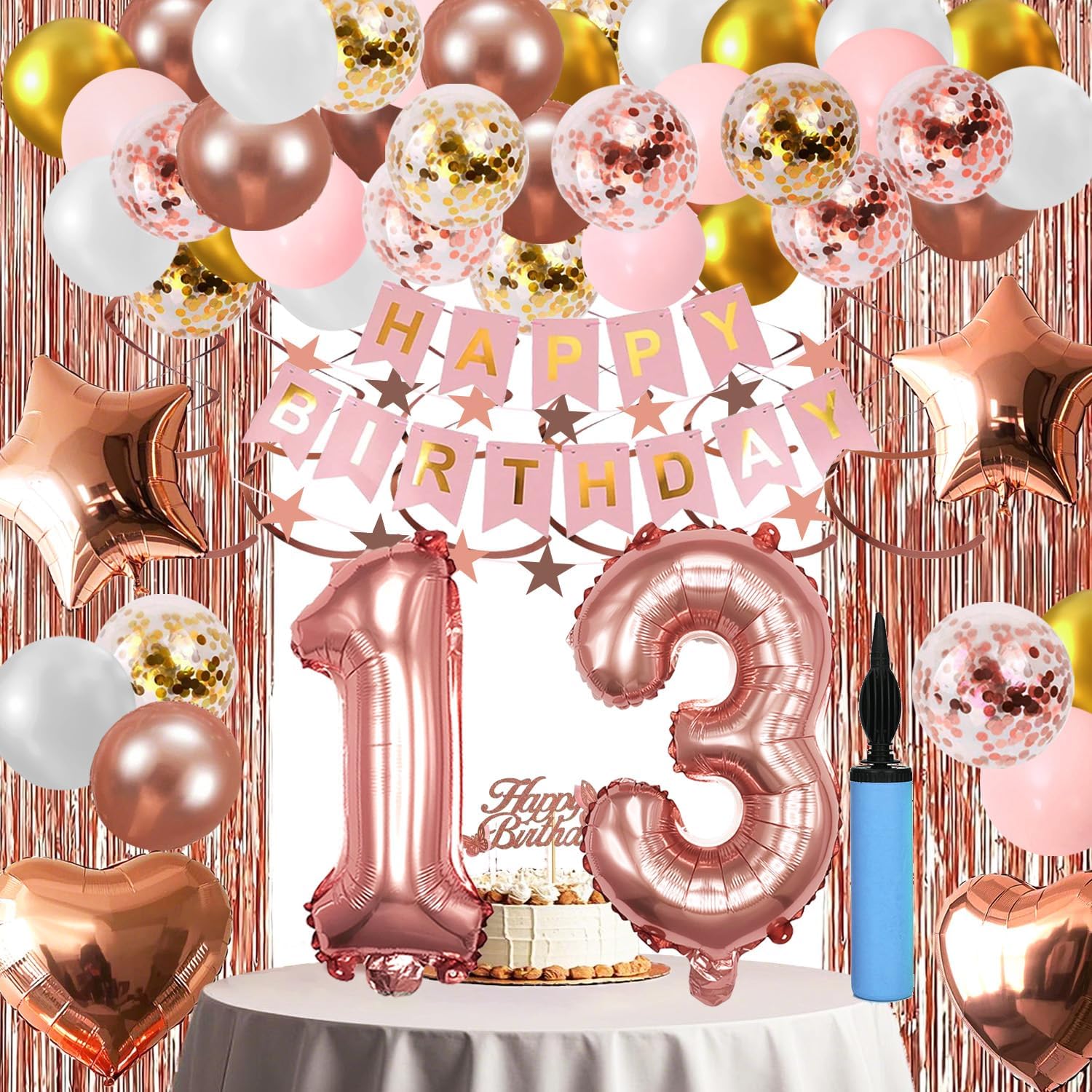 | Included Components | Happy Birthday Banner, 2 Tassel Party Curtains, 12 Colored Paper Balloons, 40 Latex Balloons, 2 Star Balloons, 2 Heart Balloons, 4 Foil Balloons (Heart-shaped and Star-shaped), 6 Rose Gold Hanging Swirls, 6.56 Feet of Star Garland, 1 Number Balloon, 1 Cake Topper, 1 Ribbon/Dot Tape, 1 Balloon Pump, 1m*2m Long Rose Gold Sequined Curtains |