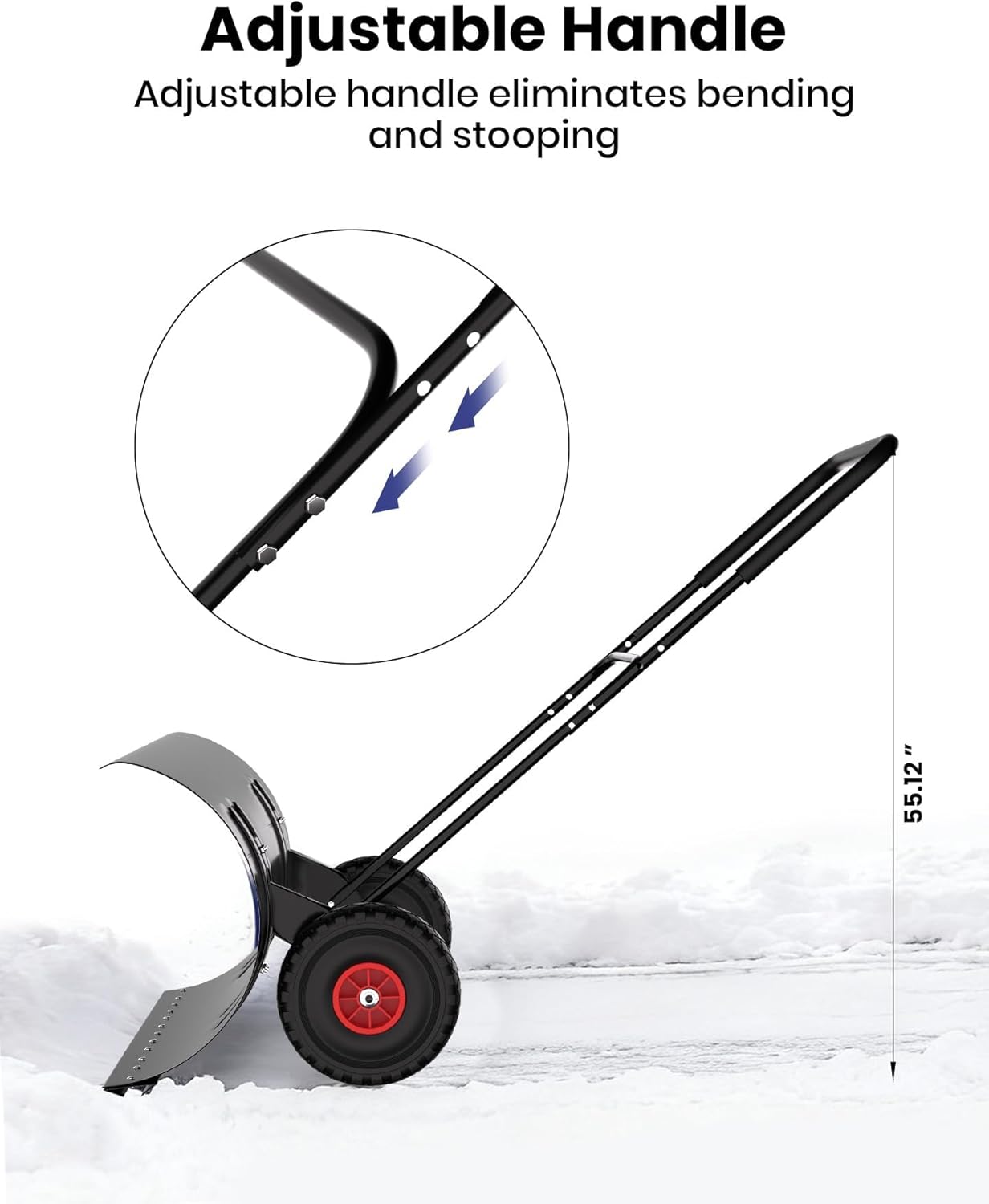 Description:Say goodbye to back-breaking shoveling with our heavy-duty 2-wheel snow pusher. Designed for homeowners facing tough winter conditions, this tool makes clearing snow from driveways, sidewalks, and doorways a one-person job. The wide 36-inch/29-inch blade allows you to move more snow with each pass, while the large wheels and adjustable ergonomic handle provide effortless pushing and superior control. Built to last with a robust steel frame, it's your go-to solution for efficient and comfortable snow removal.Name: Heavy-Duty 2-Wheel Snow PusherColor: Blue,Yellow,BlackSize: 29" width, 15.75" height/36" width, 15.75" heightBlade Width: 36 inches/29inchesCapacity: Clears a 36-inch/29-inch path per pushFeatures:Adjustable Height HandleTwo Large, Durable WheelsReinforced Steel Frame ConstructionWide 36-Inch Clearing PathErgonomic GripPackage Includes:1 x Heavy-Duty Snow Shovel with Wheel