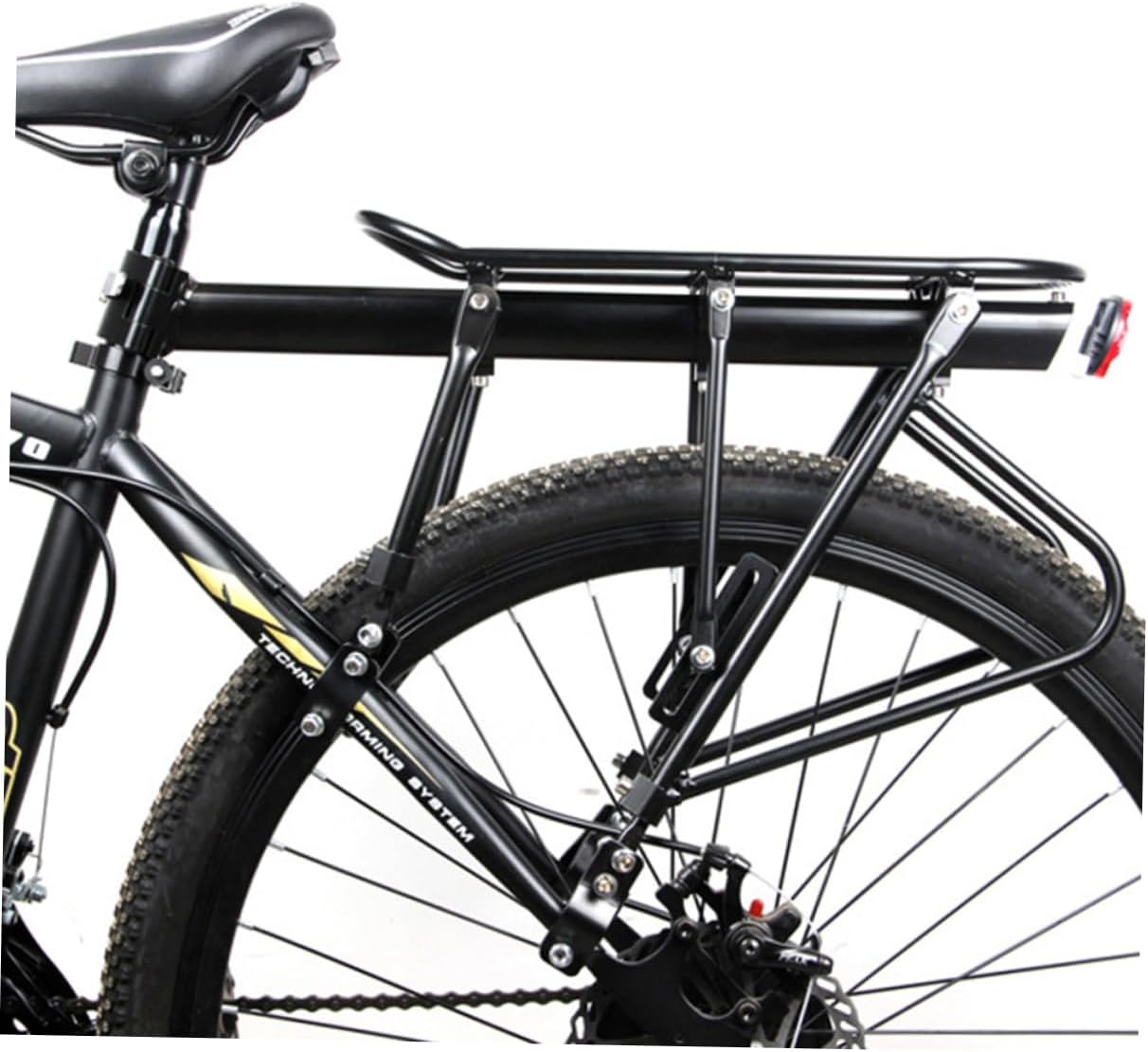 Package Include 1 x Bike Carrier Rack Features - Material: Aluminum alloy luggage carrier. - Color: solid cargo racks. - Size: About 55 x 14.5 x 40.5 cm bike rear pannier. - Made of material, the bike rack is durable and use bike carrier rack. - Fits bikes, especially for road bike and mountain bike mount racks. - Install one and easy pick up you girlfriends for outdoor trip bike shelf accessories. - Lightweight compact design for easy transportation. - aluminum alloy frame is strong and durable. - Movable and balance fixed rack, it is to use for suitcases, backpacks, baskets so that you can carry lots of things with you and make a convenient short trip.Goods Descriptionmount racks This item is manufactured with for durable and use.balance solid cargo racks Movable and fixed rack, it is to use for suitcases, backpacks, baskets so that you can carry lots of things with you and make a convenient short trip.bike shelf accessories solid aluminum alloy made, the frame is strong and durable