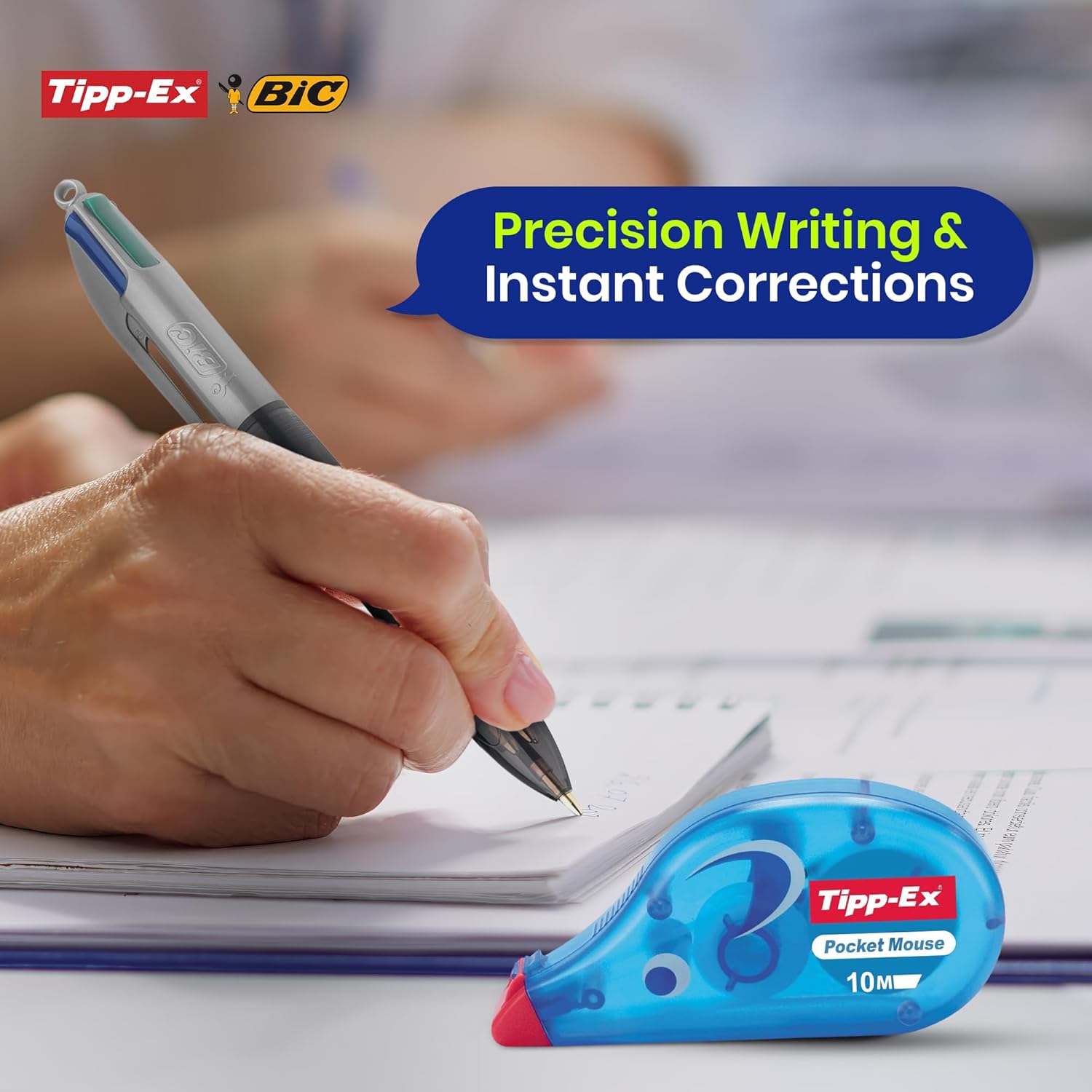 The BIC 4 Colours Grip Pro Ballpoint Pens and Tipp-Ex Pocket Mouse Correction Tapes offer a reliable and versatile combination for writing and editing. Each BIC pen features four ink colours—blue, black, red, and green—allowing seamless transitions between tasks. The pens are designed with a comfortable grip and a retractable mechanism, making them perfect for prolonged use in school, office, or home settings. The Tipp-Ex Pocket Mouse correction tapes deliver instant and precise corrections. Each compact roller contains 10 metres of tape, ensuring long-lasting use. The ergonomic design makes them easy to handle, providing clean and accurate results without mess or smudging. This writing and correction set is an excellent choice for professionals, students, and creative enthusiasts. Whether you’re colour-coding notes, creating detailed diagrams, or correcting errors, this bundle ensures efficiency and convenience for any task.