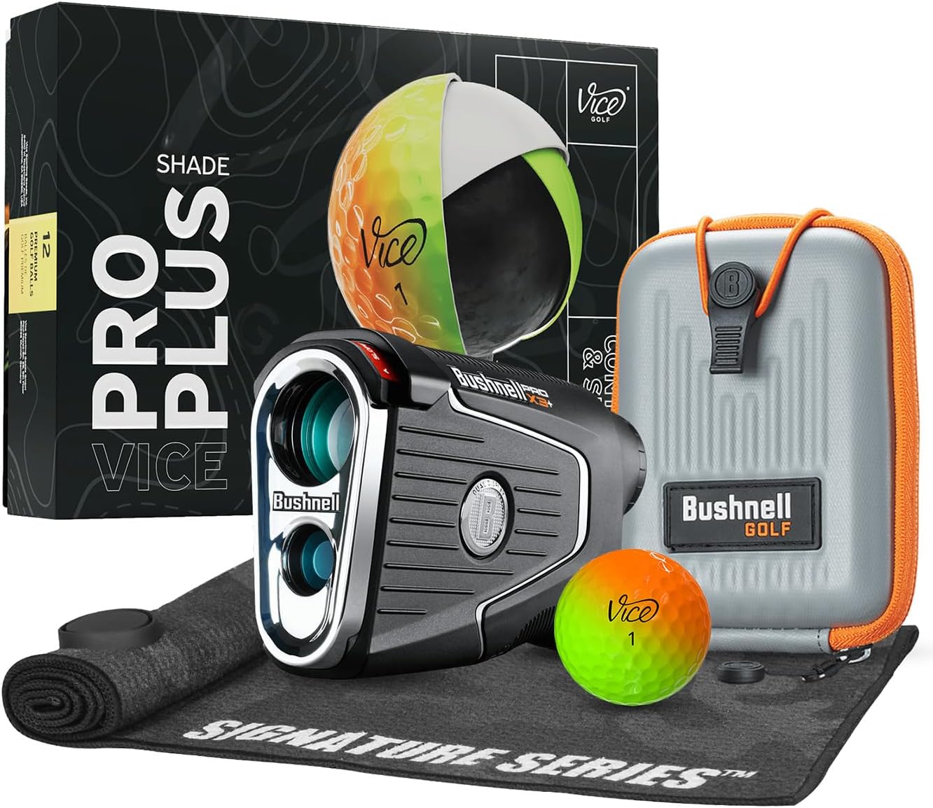 Precision Perfected: Next Level Performance with Wind & LINK-Enabled Technology. Pro X3+LINK is the most powerful, precise laser rangefinder to date – packing all of the market-leading innovations you have come to expect from the #1 Rangefinder in Golf. Bushnell Golf was the first to bring laser rangefinders to Golf. Our evolution continued with the introduction of “Slope” compensated distances for elevation change directly to your rangefinder, quickly becoming the most trusted “Slope” distances on Tour. We have now partnered with Foresight Sports to offer LINK-Enabled technology, taking your stock club yardages provided by your launch monitor to give you personalized club recommendations right in your laser rangefinder's display. Play your best game with a ball that fits you. This bundle includes a dozen Vice golf balls. Take strokes off your game with the alignment aid, use it to visualize your aim on the tee or lining up a putt.