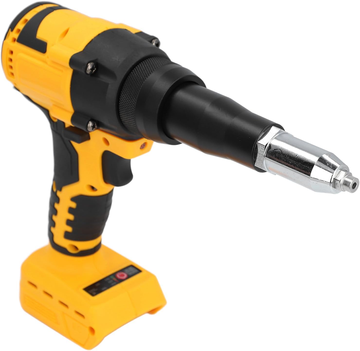 1. Easy To Operate: This portable electric automatic rivet gun is easy to operate, you can use one hand to operate the tool and make an accurate and tight connection with great convenience.2. Brushless Motor: This electric rivet gun with brushless motor can provide up to 10KN pulling force, which makes the riveting tool run 50% more efficiently in higher temperature. Compared with brushed motors, brushless motors have a service life of up to 10 years without replacement, low noise, no sparks, no need to replace carbon brushes frequently, providing you with considerable safety and convenience.3. Excellent ABS Material: This electric brushless riveter tool is made of excellent ABS material, which is sturdy and abrasion not easy to be damaged, and has a long service life.4. Wide Application: This cordless rivet gun has a wide range of applications for industrial, production and individual decorative use, for machinists, metal workers, automotive and construction assemblers, and more.5. Good Compatibility: This cordless rivet tool has good compatibility, it is suitable for DCB201, for DCB203, for DCB204, for DCB206, for DCB207, for DCB208, for and other batteries (not included).Spec:Item Type: Cordless Rivet ToolMaterial: ABSMaximum Output Power: 360WMaximum Tensile Strength: 10KNStroke: Approx. 20mm / 0.79inRivet Size: Approx. 3.2-4.8mm / 0.13-0.19inCompatible Battery: 20V Lithium Ion Batteries for DCB201, for DCB203, for DCB204, for DCB206, for DCB207, for DCB208 (Not Included)Color: YellowApplication Model: for 20V Series (including 60V voltage) Lithium Ion Batteries, for DCBP034 1.7Ah New Blade Battery, for DCBP520 5.0Ah New Blade Battery, for DCB201-20V Maximum 1.5Ah, for DCB203-20V Maximum 2.0Ah, for, for DCB204-20V Maximum 4.0Ah, for DCB206-20V Maximum 6.0Ah, for DCB208-20V Maximum 8.0Ah, for DCB230-20V Maximum 3.0Ah Compact New, for DCB240-20V Maximum 4.0Ah