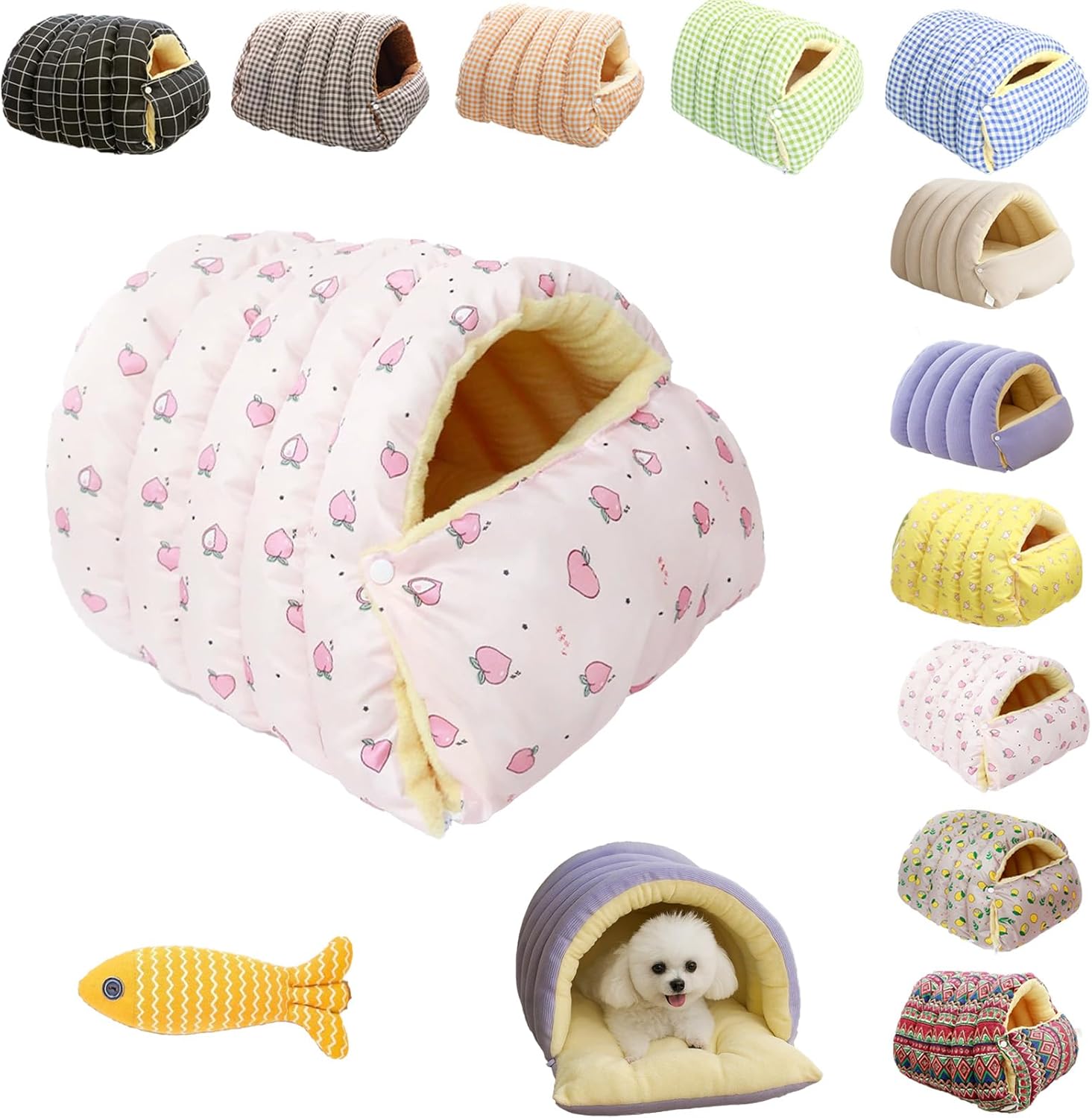 This cozy monster cat bed has double-layer PP cotton and a fleece lining to provide comfort and warmth. It is removable and washable, non-slip and lightweight, ensuring both pet safety and ease of use, and also adapting to home style Why Choose Our ? 1. Cave Design and Fleece Lining: Give your pet a sense of warmth, privacy, and security 2. Double-layer PP Cotton Filling: Provides excellent support and ample space for a variety of resting areas 3. Removable and Machine-Washable Components: Easy and effortless cleaning 4. Non-slip Base and Lightweight Design: Perfect for home and travel 5. Monster-shaped Design in a Variety of Colors: Suitable for all home and pets Specifications: Name: Cozy Monster Cat Bed Materials: Fabric: Polyester, Filling: PP cotton Color: Light Purple, Light Beige, Light Green, Blue Grid, Green Grid, Coffee Grid, Orange Grid, Black Grid, Bohemian Style, Pink Peach, Gray Lemon, Yellow Ice Cream Size: Small: 45*30*19cm/ 17.7*11.8*7.5in , Large: 57*37*28cm / 22.4*14.6*11in Weight: 410g, 740g Package Includes: 1 PC * Cozy Monster Cat Bed 1 PC * Cat Toys Notes: 1. Due to manual measurement, please allow an error of 0-1cm. Please make sure you don’t mind before bidding. 2. Due to the difference between different monitors, the picture may not reflect the actual color of the item. Thank you!