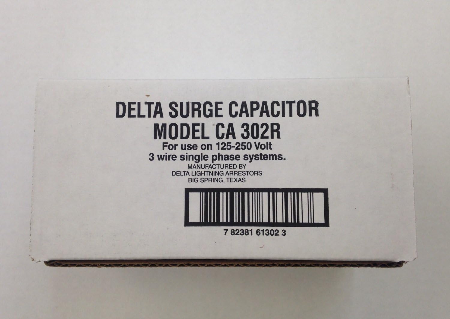 Delta CA302-R 2-Pole 125/250VAC Single Phase Surge Capacitor. 18" wire leads. All wiring should be performed only by a qualified electrician to meet local and NEC electrical codes.