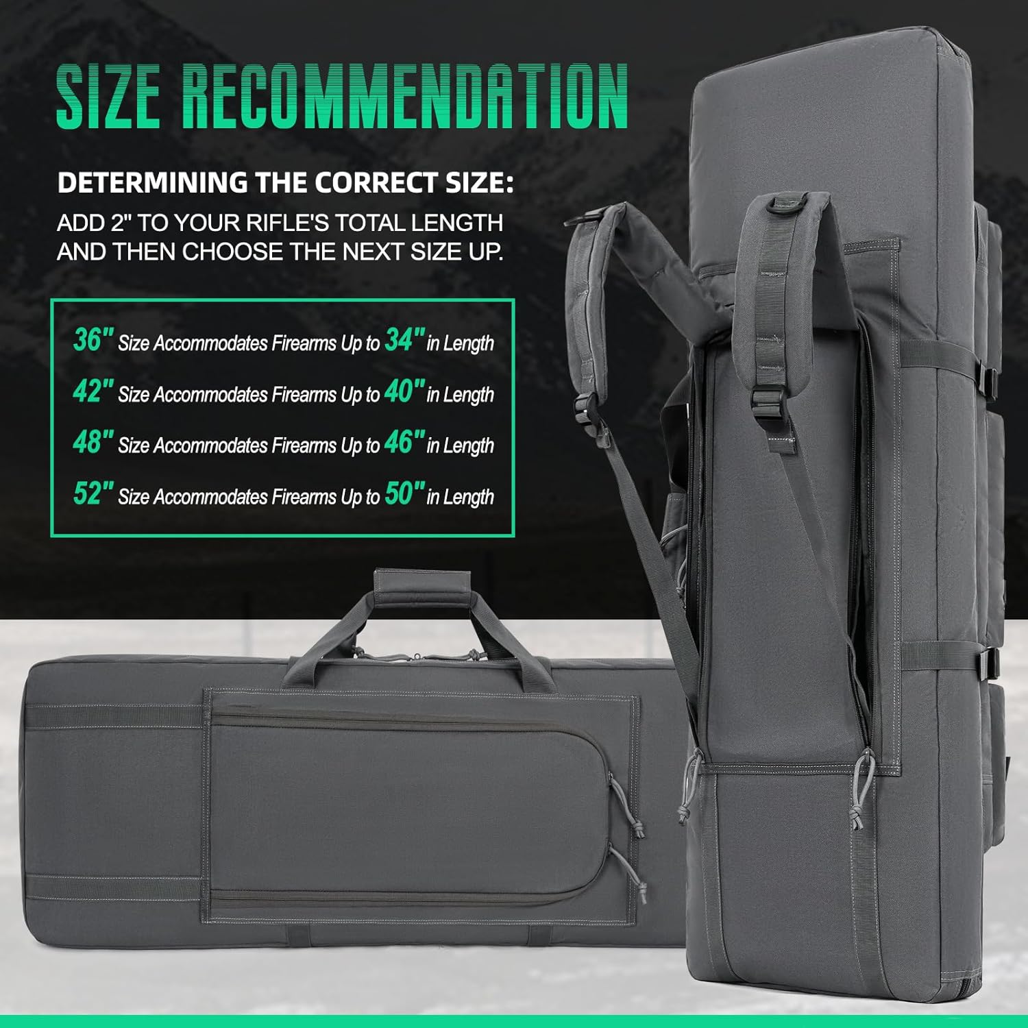 DULCE DOM 32/36/42/48/52 inch Double Rifle Case Soft Bag Gun Case, Perfect for Rifle Pistol Firearm Storage and Transportation, All Around Shooting Range Tactical Rifle Backpack, Indoor Outdoor