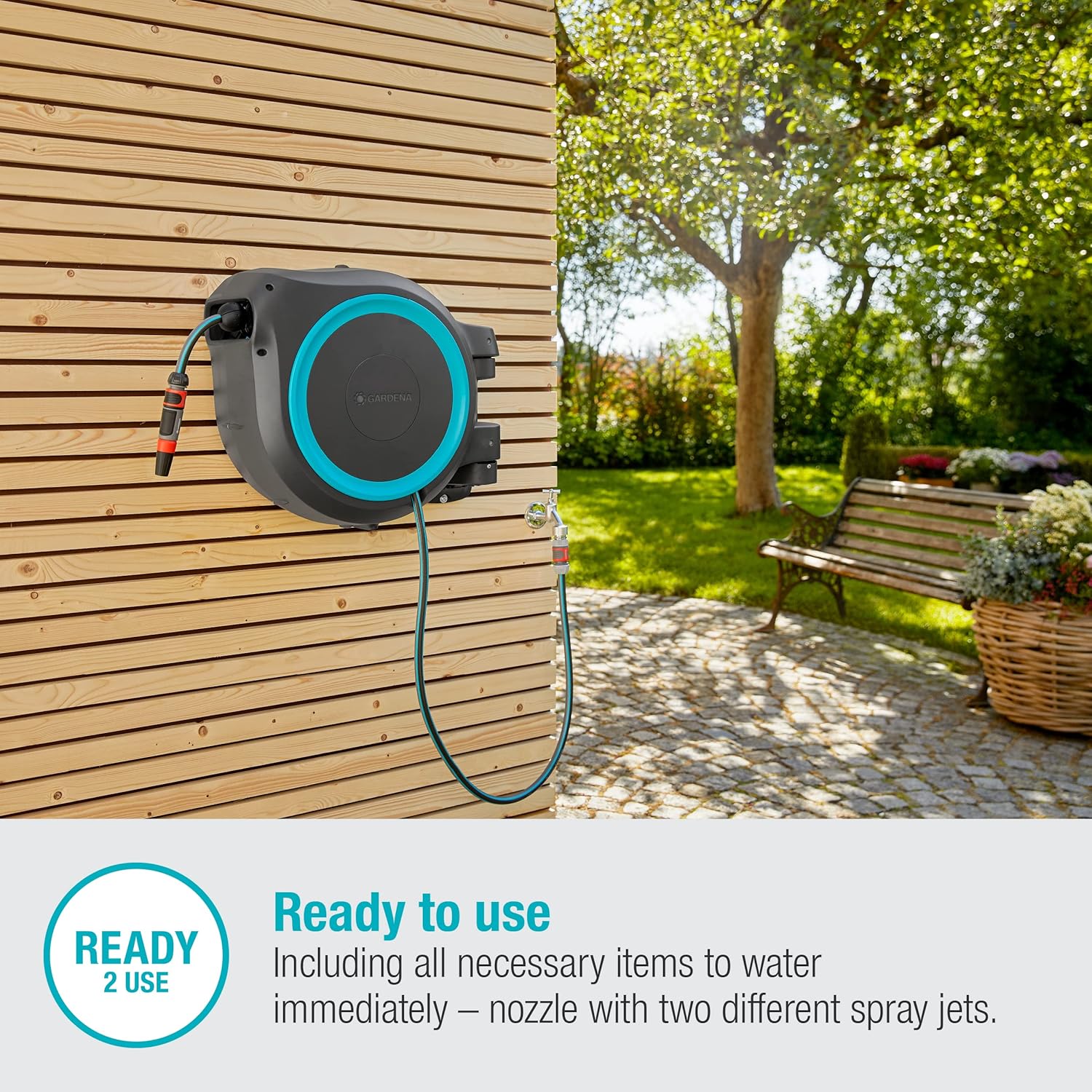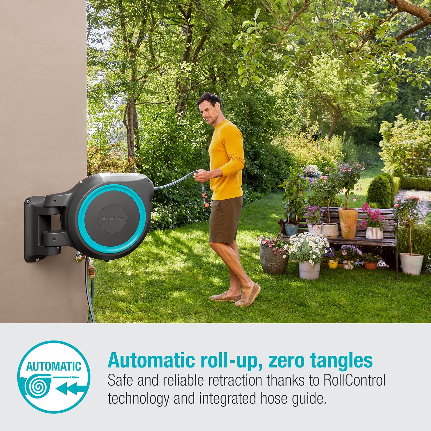 | Included Components | 1x Gardena Wall-Mounted Hose Box RollUp, 1x 30 m Gardena high-quality hose (13 mm), 1x connecting hose, 1x nozzle, 1x wall bracket with screws, plugs and mounting aid |
