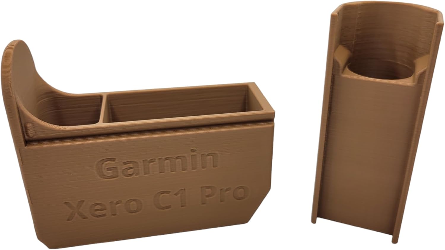 This is a compact hard case 3D printed for the Garmin Xero C1 Pro Chronograph. It has room to store the Garmin Xero C1, the tripod stand, and the USB charging cable. (Garmin Xero C1 and accessories not included). The top snaps into place to ensure it doesn't open in a range bag. The case measures 4.75"L x 4"H x 1.75"W. Case is 3D printed out of PLA+.