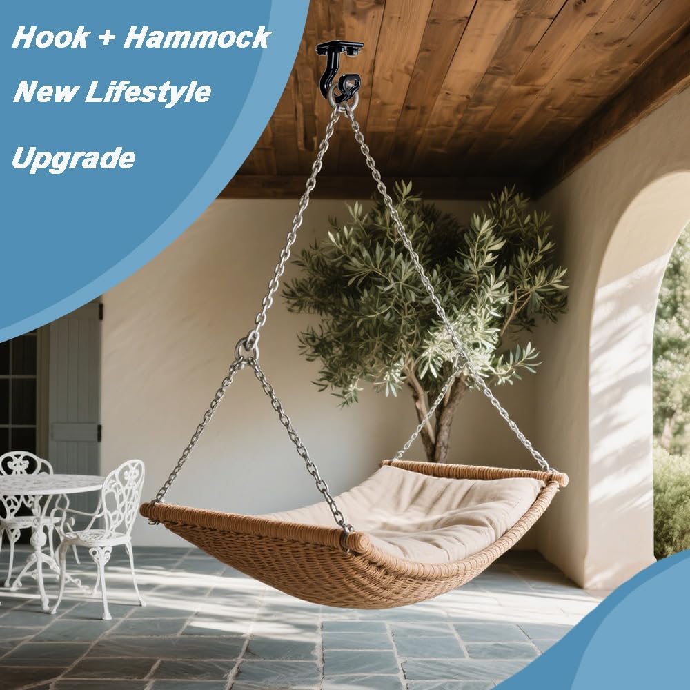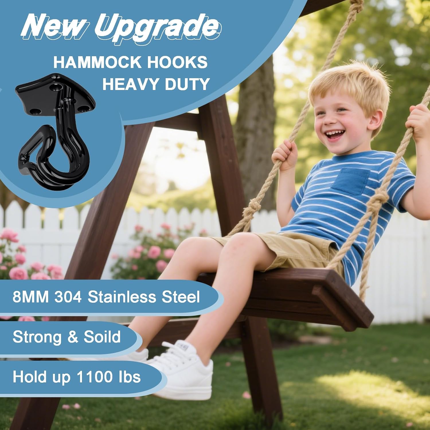Hang with Confidence: Heavy-Duty Hammock & Swing HooksUpgrade your relaxation setup with our premium stainless steel hanging kit, designed to safely support swings, hammocks, and heavy loads (up to 1100 lbs). Each set includes 2 hooks, 6 concrete bolts, and 6 wood screws—all crafted from rust-proof 304 stainless steel for lifelong durability.Why You’ll Love These Hooks:✔ No Rust, No Worry: Corrosion-resistant steel stands up to rain, humidity, and salt air.✔ All-in-One Kit: Included hardware make installation a 10-minute job.✔ Sleek & Silent: Enjoy noise-free swinging, whether indoors or outdoors.✔ Tested for Safety: Triple-hole base ensures maximum grip on wood or concrete.