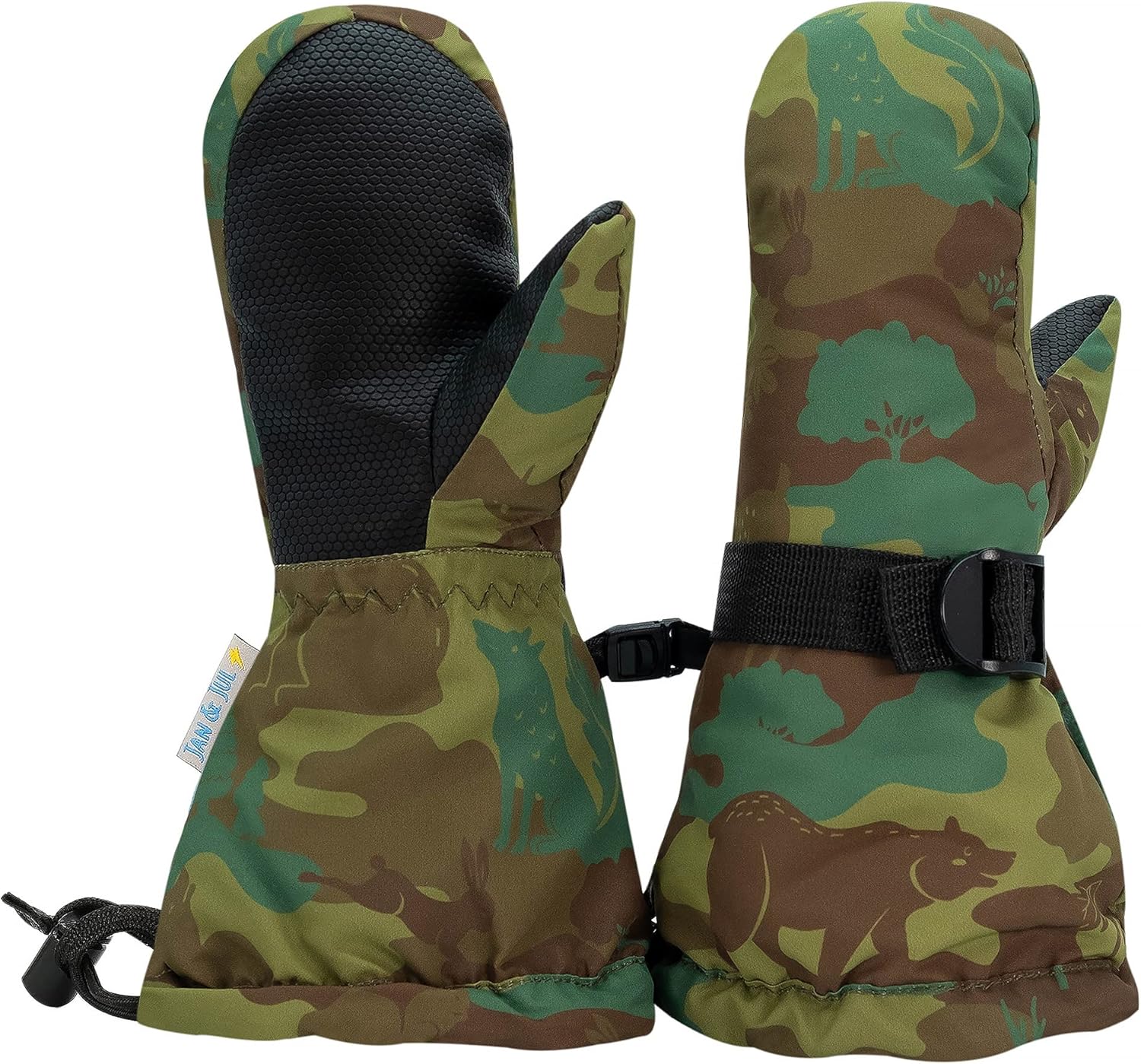 These well designed waterproof kids mittens keep little hands dry, warm and cosy in snow, rain or slushy. Snow mittens are rated -15℃, good for cold winter days and skiing. Comes in sizes for toddlers and kids with thumbless options for babies.WATERPROOF: Kids’ mittens designed to keep hands dry in snow and slush, featuring a water-resistant shell with a water-proof membrane insideWARM: Kids’ winter mittens with cozy Thinsulate fleece lining for guaranteed warmth when your kids play in snow, ski or snow-boardWIDE & LONG SLEEVE: Easy to put-on snow mittens with wide sleeve, keeps the cold & snow out with long sleeve and stays-on with one-pull closure over your kid’s winter jacketWRIST CINCH: Ensures perfect fit on growing toddler hands, no more slipping off glovesPERFECTLY SIZED: Baby mittens with no thumbs, toddler and child mittens with thumb, comes in a variety of colors and prints for girls and boys. Please refer to the size chart to get the perfect size for your childBased in famously beautiful and rainy Vancouver, Twinklebelle Design Inc. designs and makes "rain or shine" kids clothing under its Jan & Jul brand and accessories under its Twinklebelle brand. Its products are designed by moms who understand growing kids and the challenges of parenthood. Connect with us on Facebook or Instagram @janandjul