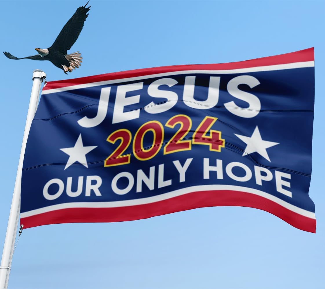 Jesus 2024 Our Only Hope American Flag, Jesus 2024 Flag Christian Flag Double Sided 5x8 Outdoor Jesus American Flags for Outside Christ Faith Flags for Room House Yard Outdoor Garden Wall Decor