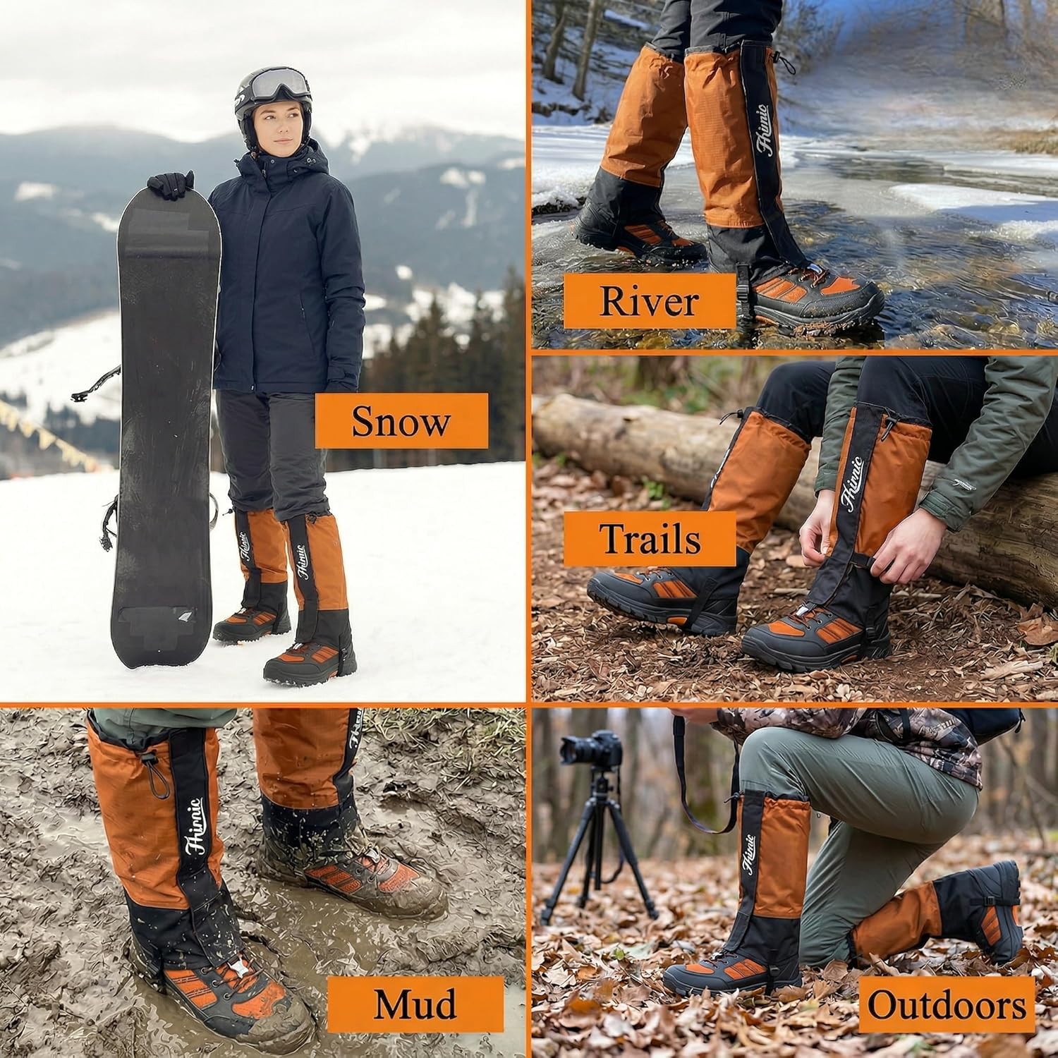 1. SERIOUS PROTECTION FOR THE TRAILS These hiking gaiters are designed to protect you from mud, rocks, sand, and debris, making them perfect for hiking, trekking, and mountaineering. Whether you’re facing rough terrain or muddy trails, these gaiters shield your legs and boots effectively, ensuring they stay dry in the most challenging conditions. 2. SECURE FIT THAT STAYS IN PLACE Engineered for hiking boots, these gaiters feature an adjustable top drawstring, sturdy lace hook, and reinforced underfoot straps, ensuring a secure and comfortable fit throughout your adventure. With these adjustable gaiters, you won’t have to worry about them slipping or twisting on rugged trails. A 3.15-inch wide segmented hook-and-loop closure runs the full length of the gaiter, providing a secure fit and excellent adjustability over boots or pants while enhancing breathability. Designed to fit both men and women, these hiking gaiters offer a reliable fit for everyone. 3. LIGHTWEIGHT YET DURABLE Constructed from anti-tear waterproof Oxford fabrica with an 8000mm waterproof rating and 5000mm breathability rating, these gaiters are lightweight yet provide reliable protection without adding unnecessary bulk. Whether you’re trekking through mud, running on a trail, or navigating rough terrain, these gaiters won’t slow you down. Designed for long-lasting durability, they can handle everything from mud gaiters to snake gaiters, making them versatile for year-round outdoor activities. 4. BUILT FOR RUGGED OUTDOOR USE From snake gaiters to mud gaiters, these gaiters are engineered for all-weather, all-terrain performance. Whether you’re hiking, trekking, or working outdoors, their breathable design and tough construction make them an essential part of your gear. Ideal for anyone who needs gaiters for hiking boots, gaiters for trekking, or waterproof gaiters, they are built to endure even the harshest conditions, offering protection against debris, mud, and water. 5. COMFORTABLE ALL-DAY WEAR These adjustable gaiters for men and women are designed to fit most calf sizes, ensuring a customized, comfortable fit. The breathable material keeps your legs cool while offering additional protection against debris and insects. Whether you’re hiking, running, or working in the garden, these gaiters provide comfort and reliable protection. Plus, we offer a 1-year warranty for your peace of mind.