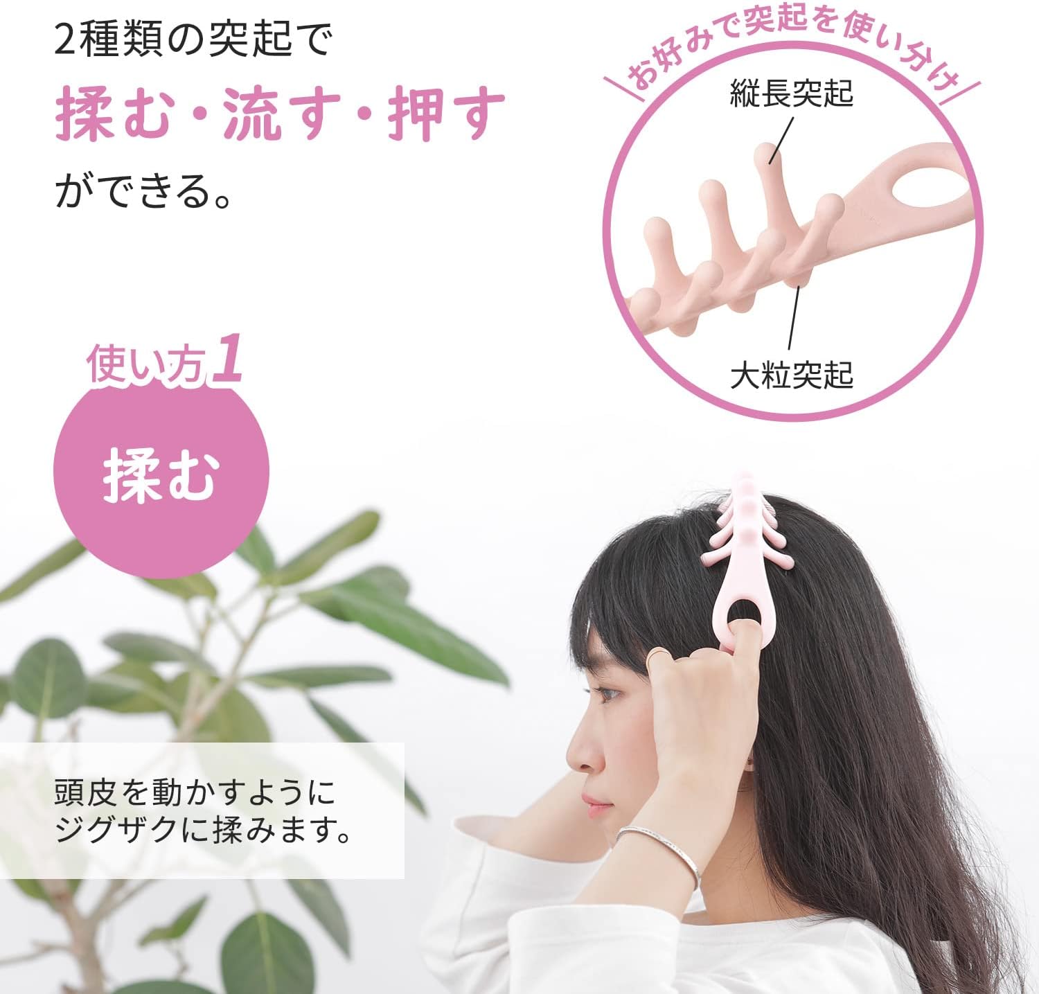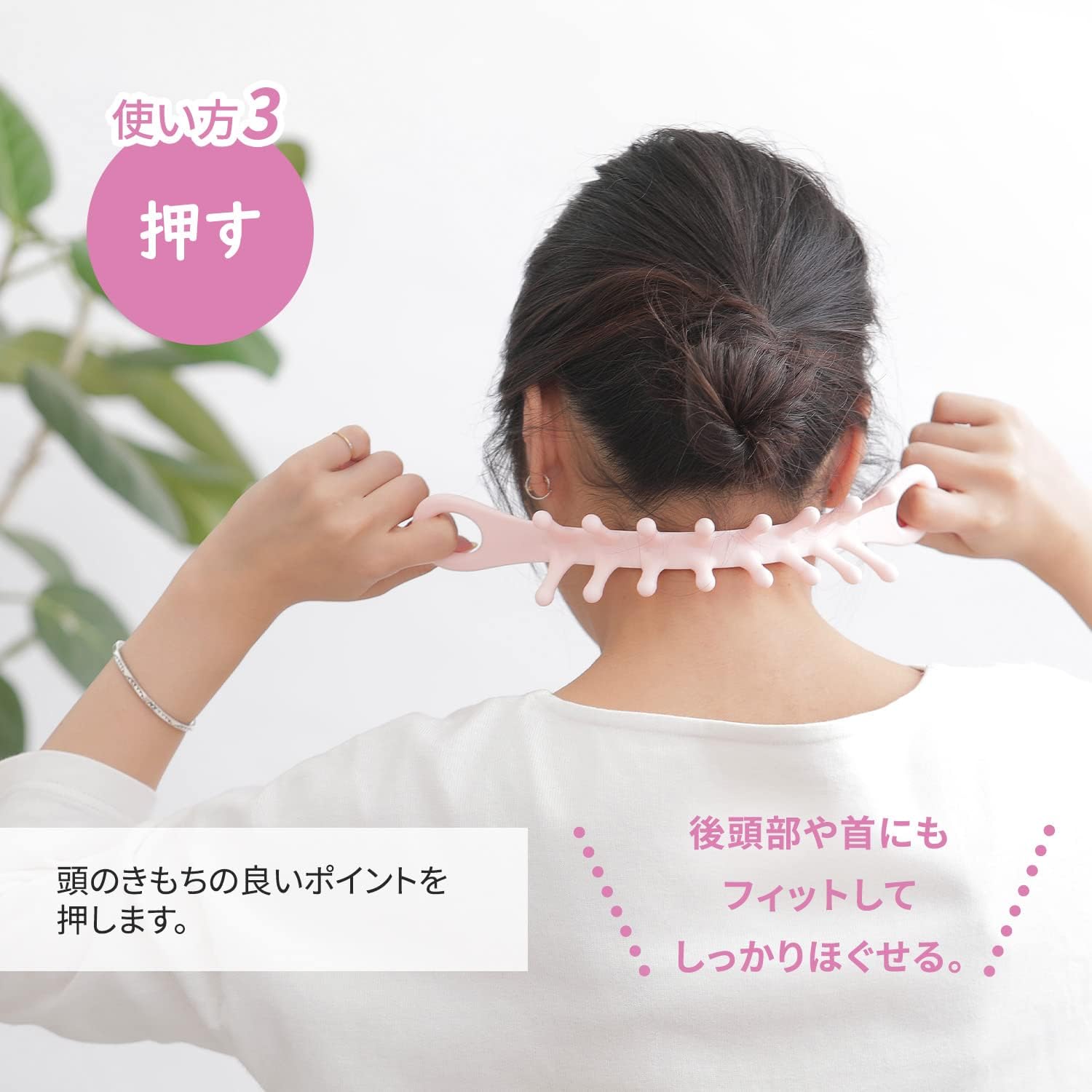 A tool that can be used to release stiffness by kneading, flushing, and pushing with 2 types of protrusions. It also fits on the back of the head and neck for a firm release. Hangs for storage without adding bulk. Gray: Hard to use.