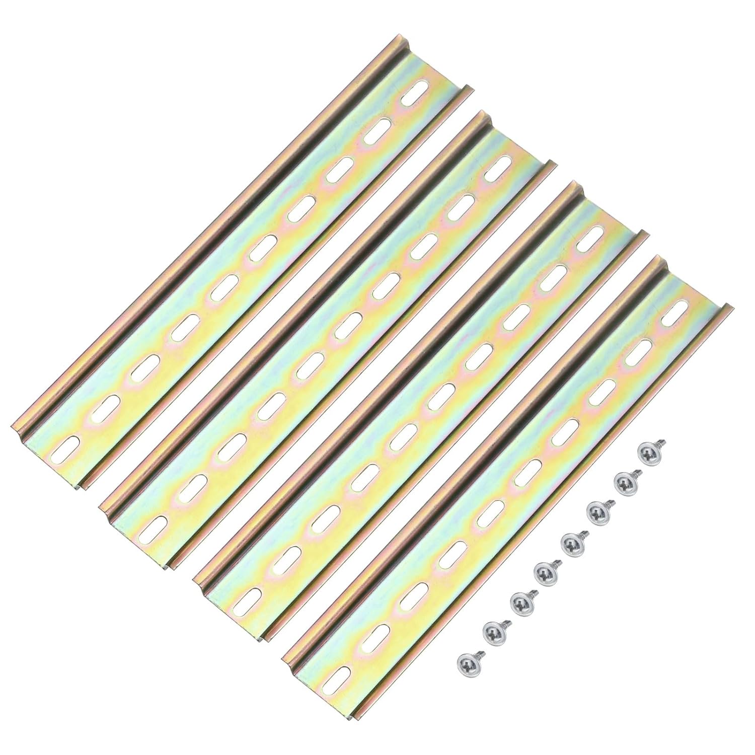 What is this?It is a guide rail widely used for a series of universal equipment installation of electrical and industrial products, such as circuit breaker, contactor, auxiliary relay, terminal block, power supply, etc.What will I get?Overall Size: 500mm x 35mm x 7mm/20 Inch x 1.4 Inch x 0.28 Inch(L*W*H);Thickness: 0.9mm/0.04";Oval Hole Size: 12 x 4mm / 0.47" x 0.16" (L*W);Hole Center Distance: 20mm / 0.8"Material: Iron;Color: Iridescent;Package Content: 8 Pcs x DIN Rails; 16 Pcs x Screw;Are there any advantages of the product?Corrosion resistant and sturdy enough for long-time service. Screws pass through the mounting holes to fix the rail at a predetermined position, and the equipment is fixed on the rail through a standard structure to achieve the purpose of fast installation and disassembly.How to use it?Choose the appropriate rail according to the required length, and fix the caliper through the mounting holes arranged periodically on the rail.What should I notice?Insufficient materials and unreasonable structure will cause the caliper to be easily deformed by force, which may cause the parts installed on it to be loose easily.