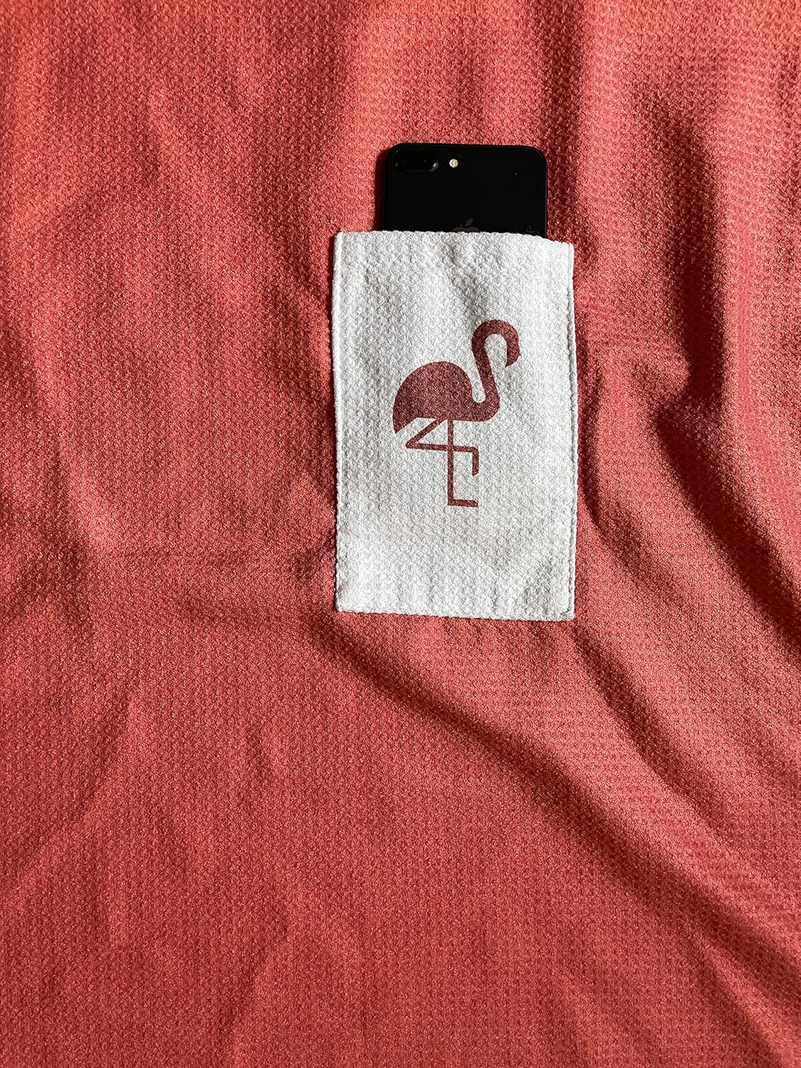 Over-sized towel features a tightly knit, waffle cotton construction that will keep the sand on the beach and the water off of you. Your towel won't slip off of the back of your chair, and for an added bonus, drop your cell in our front-facing pocket and crank up the travel tunes. 68" x 36" fits inside carrying bag Combining modern contemporary style with premium, high-end quality and comfort. Perfect for the beach, pool or cabana. Imported
