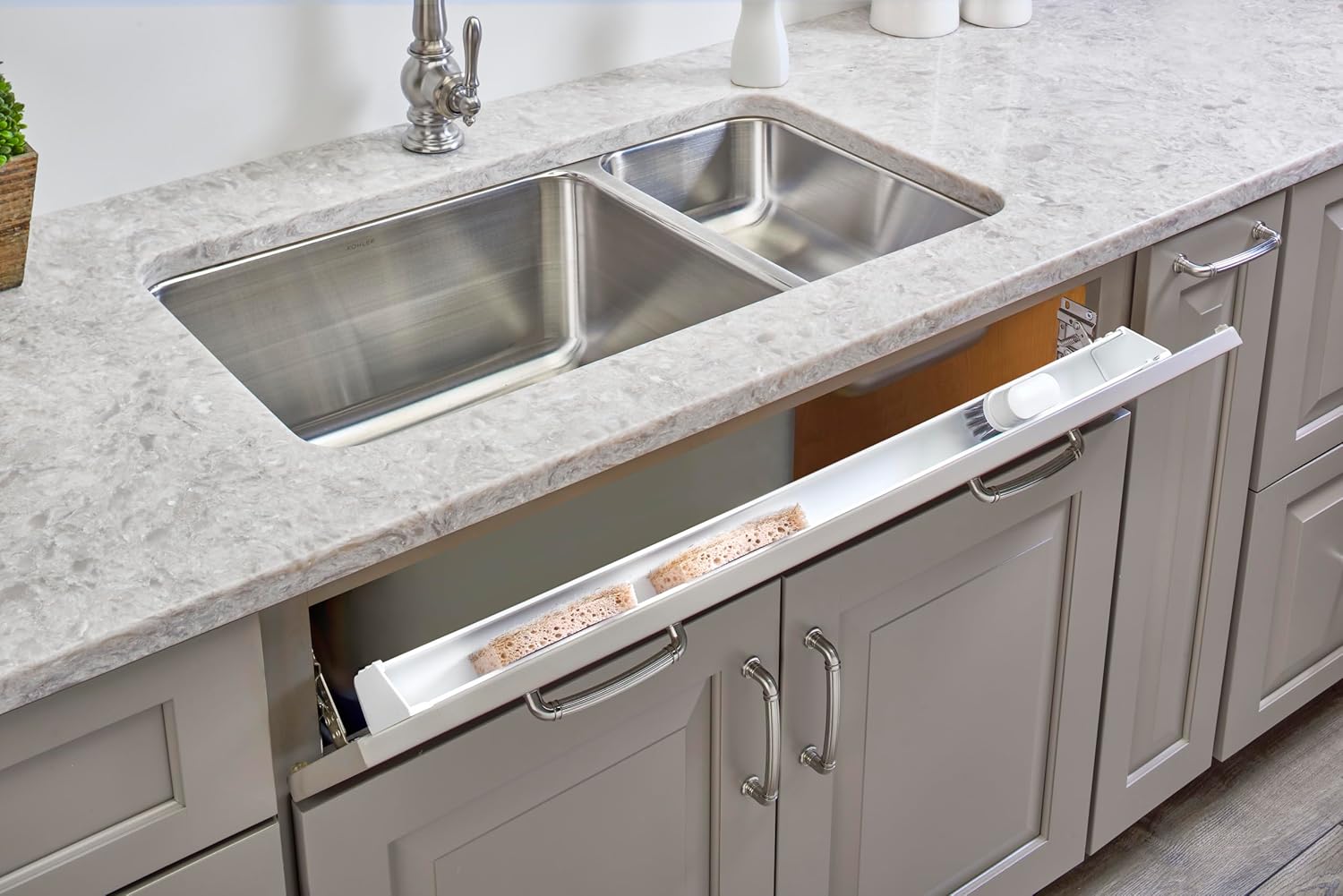 Tip-Out Trays are a must-have for every kitchen and bathroom! Perfect for hiding sponges and scouring pads out of sight yet keeping them easily accessible. The Slim Series is designed to accommodate minimum clearance openings for large sink applications. The 6540 Series is available in 11" or 14" solid or extruded tray kits in white or almond.