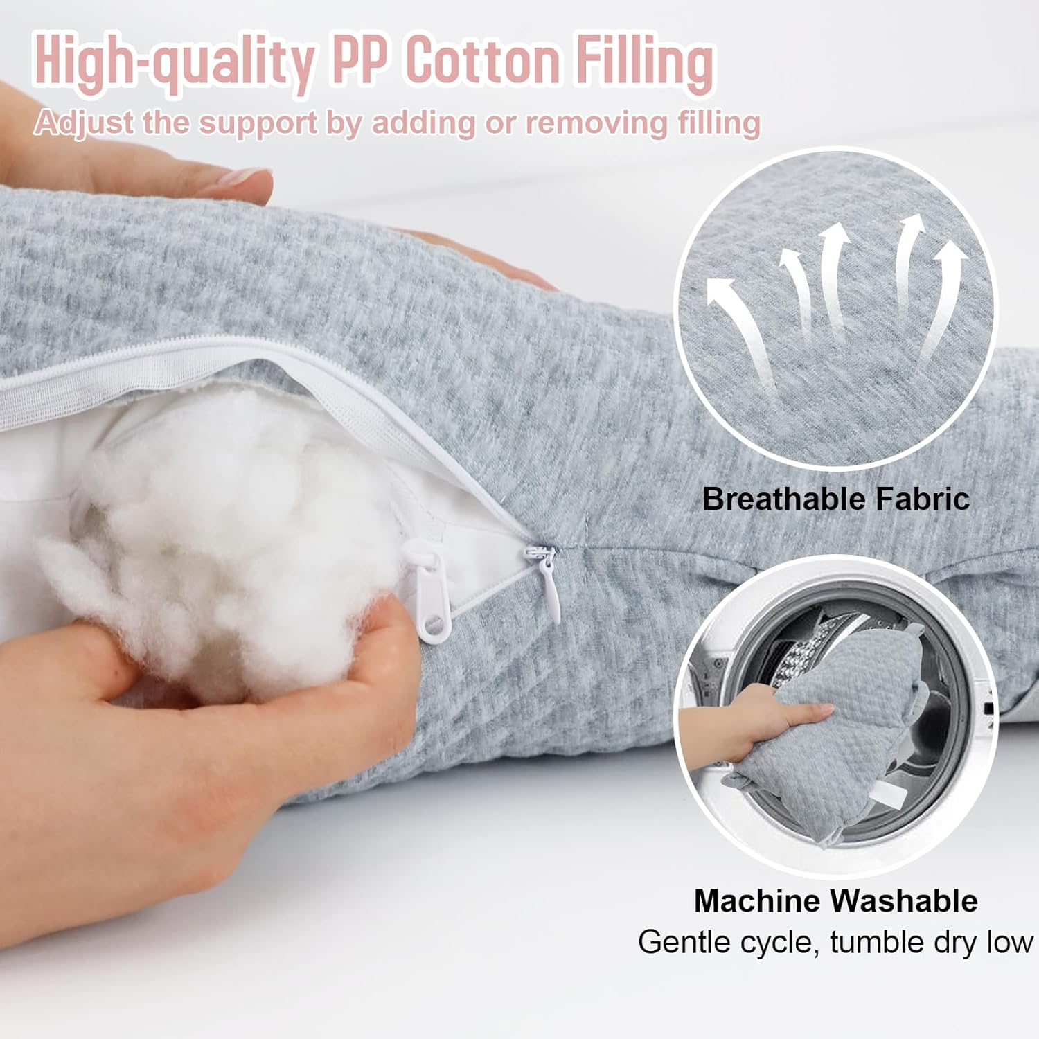 This shoulder pain relief pillow is designed for people with shoulder discomfort. It adopts ergonomic soft curves, which can naturally lift the arm, reduce shoulder pressure, promote blood circulation and relieve pain. The multifunctional design is equipped with three adjustable straps, including shoulder straps, Velcro and palm elastic straps, which can firmly support the whole arm. It is filled with high-quality PP cotton, breathable and soft, and the invisible zipper design allows you to freely add or remove fillers to adjust the support of the pillow. The detachable shoulder straps and Velcro support the interchangeable use of left and right hands, and the pillowcase can be machine washed and dried at low temperature. It is suitable for postoperative rehabilitation of rotator cuff injuries, shoulder pain, etc., and is a thoughtful and healthy gift for relatives and friends.