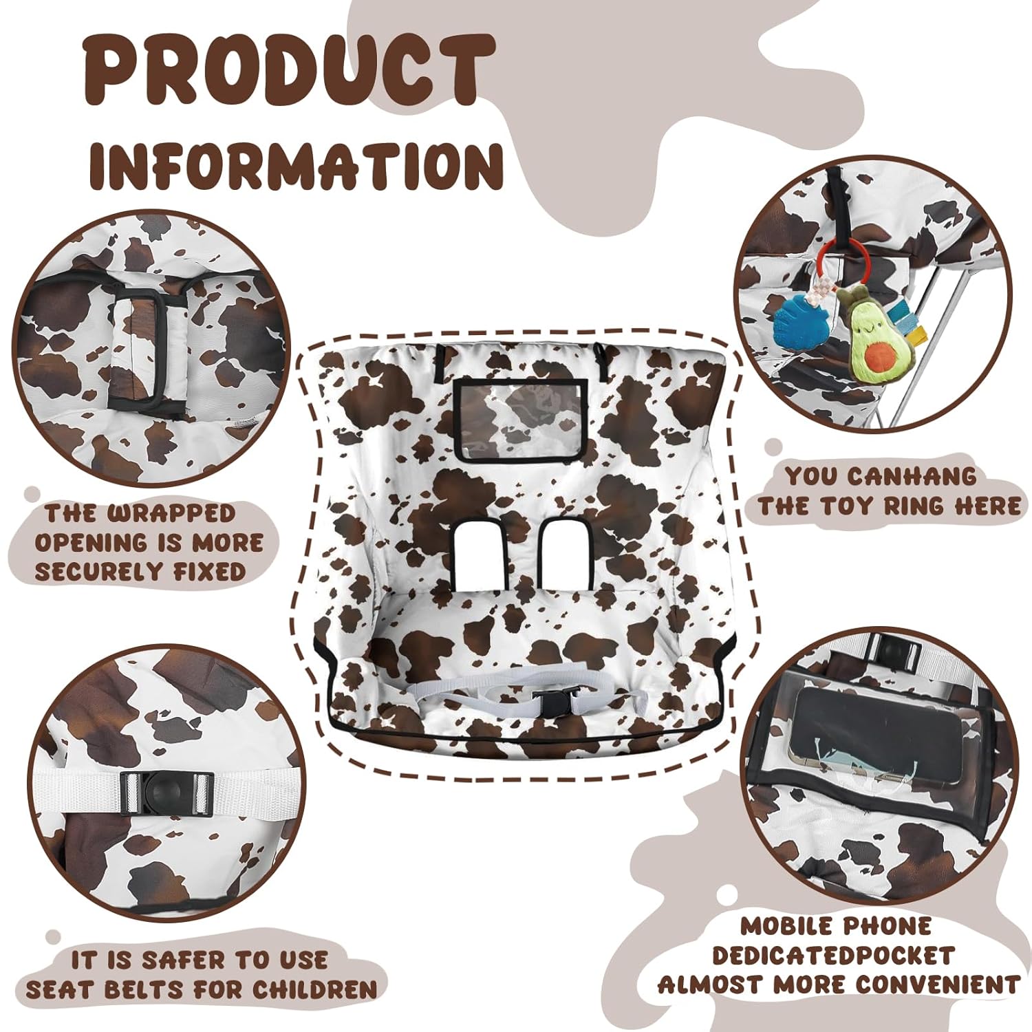Shopping Cart Cover for Baby High Chair Cover Grocery Cart Cover for Baby Girl Boy Toddler Brown Cow Print Portable Shopping Cart Cover with Safety Harness