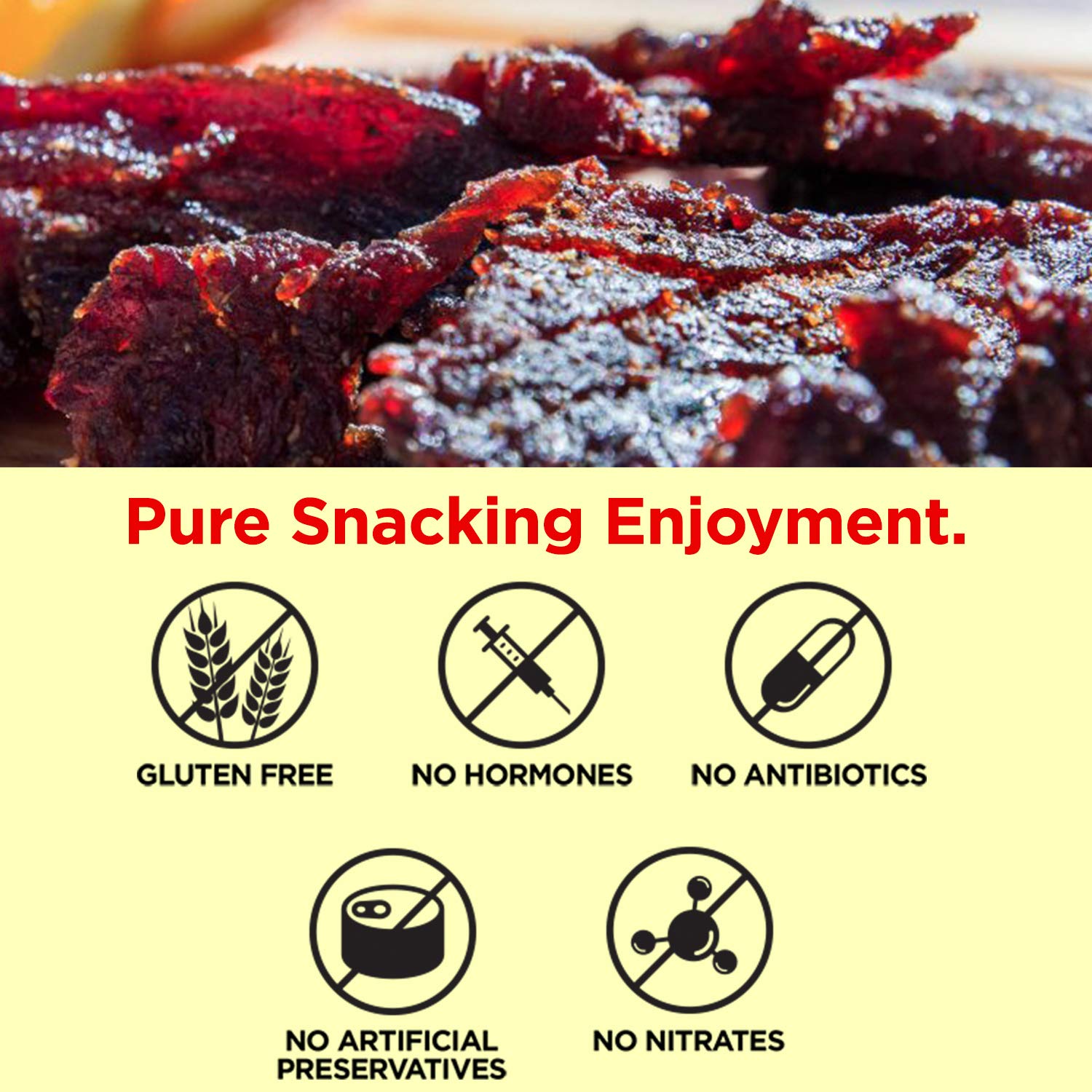 This sweet teriyaki citrus jerky will be sure to wake up your taste buds. Like any great gourmet snack, the flavor changes as you chew it and soon the refreshing citrus taste will make you feel as though you’ve been transported to a Southern California orange grove.100% Premium Grass Fed Beef JerkyLets face it. Life gets busy. You need a smarter snack that satisfies your hunger without slowing you down. We’ve got you covered! This protein-packed portable snack pack is the perfect option.The Best Choice For Your BodyMade with leaner, higher quality cuts of pork, we craft our bacon jerky with love. It’s got zero hormones, antibiotics, nitrates or preservatives, and our beef is grass fed, grass finished, and pasture raised.Our gourmet jerky is low in: calories, carbohydrates, fat, sugar, sodium. It’s high in: Nutrient-dense protein to fight cravings and give you energy. Whether you’re looking for bulk keto-friendly foods, on a gluten or soy free diet, or just want a healthy low carb, high protein snack, we’ve got a flavor for you!Choose the Better Jerky Today!Jerky’s Gourmet is dedicated to offering premium, healthy jerky with mouthwatering flavors that both kids and adults will love. Try our jerky and we guarantee, you’ll never go back to the generic stuff. Choose the better jerky today!