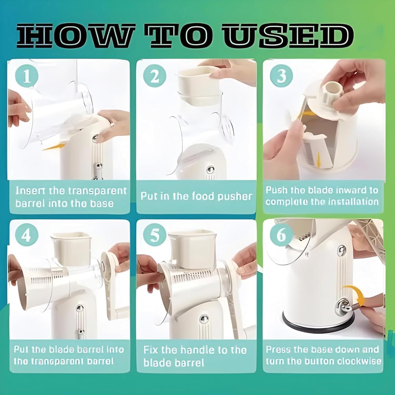 Product Description: Quick shredding: the shreds come out evenly and you can cut the thin shreds you want in minutes. Easy slicing: fast and even thickness, saving time and effort Protective cover isolation: "0" contact between the blade and the outside world, no harm to your hands and peace of mind Drum design is fast and effortless The whole body is removable for cleaning without any dead ends. Multifunctional hand grater for fruits, vegetables and nuts Product parameters: Name:Roller vegetable cutter Weight:980g Specifications: 28cm Material: Transparent upper part: PC Hand/lower/nut/screw:ABS Knife holder box:PP Blade: stainless steel Suction cup:TPR Packing list: Roller vegetable cutter*1 Slicing blade*2 Thick shredding blade*2 2 fine shredding blades*2