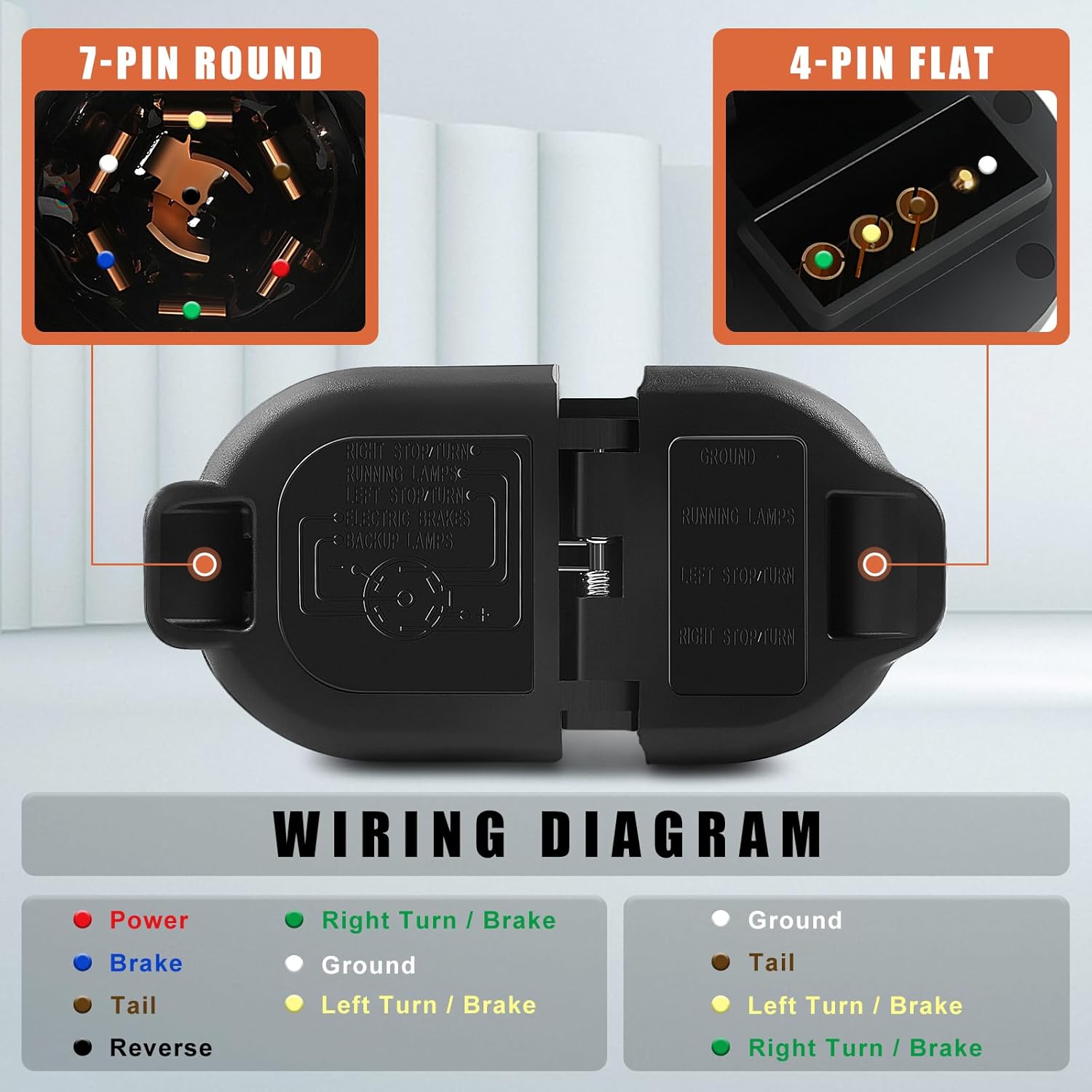 | Connector Type | 7-way Round Socket, 4-pin Flat Plug |